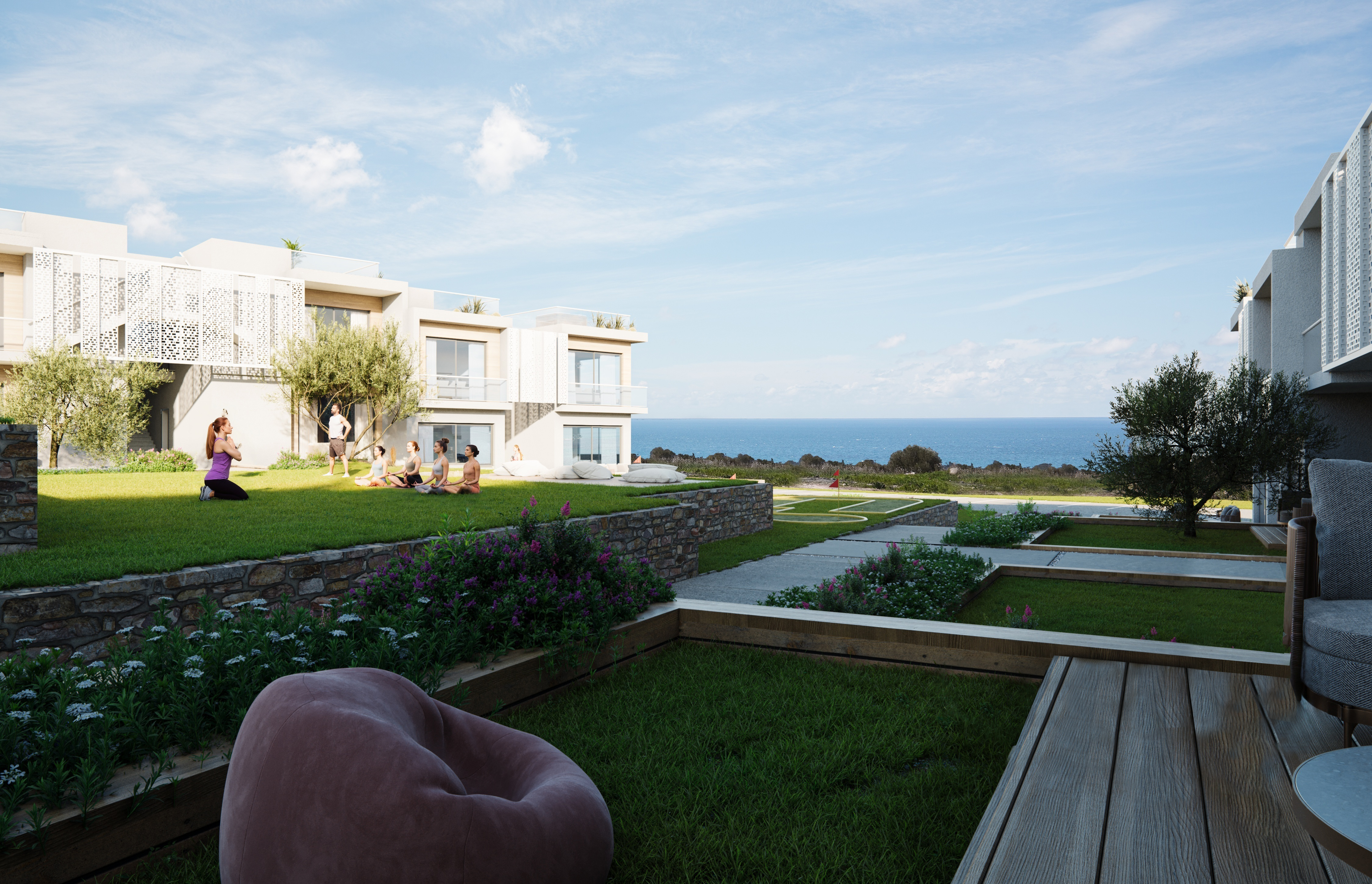 Kompleks içerisinde sakinler çeşitli eğlence etkinliklerinin keyfini çıkarabilirler. Aktif bir yaşam tarzı arayanları bir tenis kortu beklerken, damak zevkine hitap eden bir restoran da bulunmaktadır. Sağlıklı yaşam merkezimiz, rahatlamak ve yenilenmek için bir cennet sunan bir spa, sauna, hamam ve tam donanımlı bir spor salonunu kapsamaktadır. Aralarından seçim yapabileceğiniz üç açık yüzme havuzu bulunan havuzlarımızın canlandırıcı ortamına kendinizi kaptırın veya mini golf sahasında vuruşunuzu yapın.