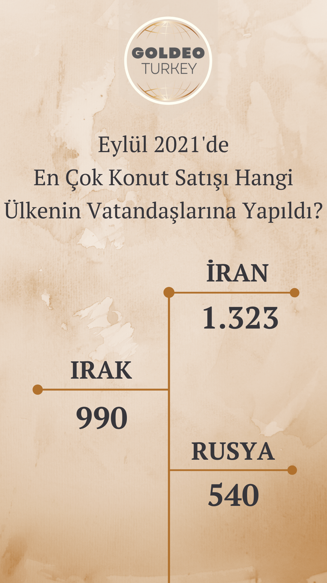 2021 yılının Eylül ayında İran vatandaşları Türkiye’den bin 323 konut satın aldı.