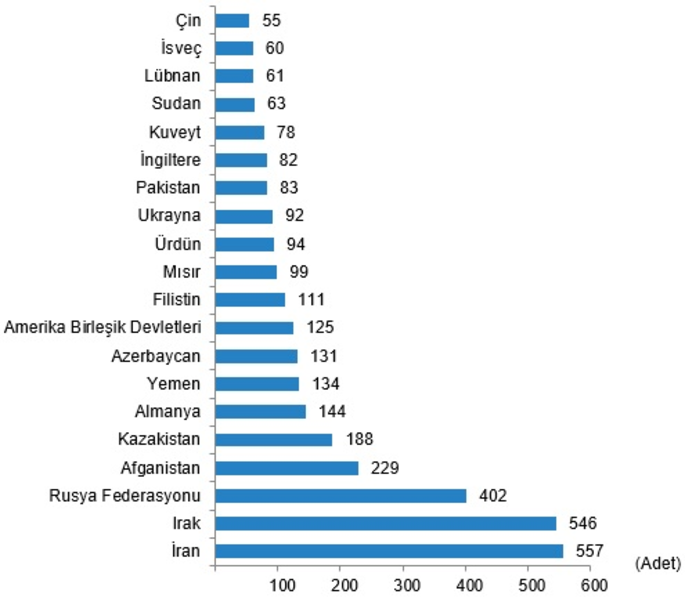 İran vatandaşlarını sırasıyla, 546 konut ile Irak, 402 konut ile Rusya Federasyonu, 229 konut ile Afganistan ve 188 konut ile Kazakistan vatandaşları izledi.