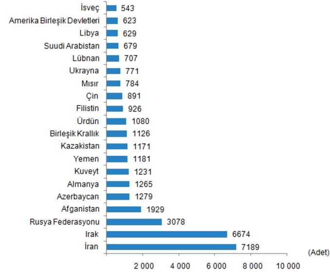 İran vatandaşları 2021 yılı Aralık ayında ise Türkiye'den bin 462 konut satın aldı.